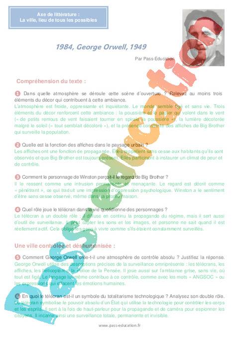 Correction Questionnaire 1984, George Orwell : 2eme Secondaire pdf
