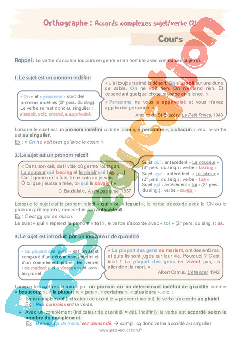 Accords complexes sujetverbe (2) : 2eme Secondaire – Cours rtf