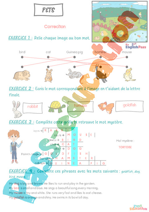Correction Exercices Animals (Pets) – Vocabulaire – Apprends l’anglais avec Kelly and James pdf