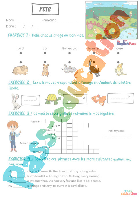 Exercices Animals (Pets) – Vocabulaire – Apprends l’anglais avec Kelly and James pdf
