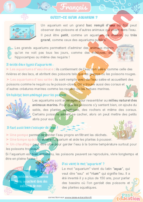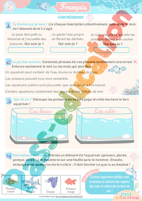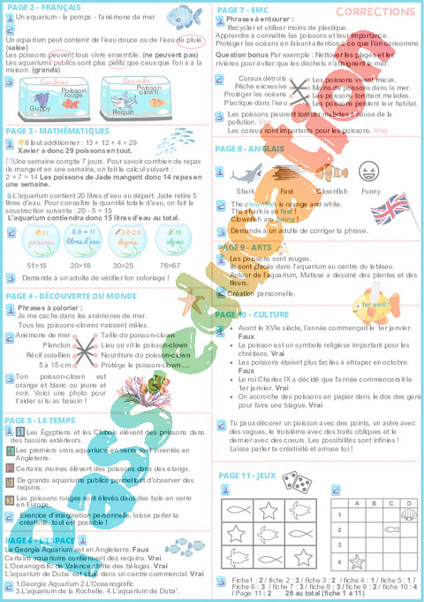 Cahier de vacances à imprimer sur l’Aquarium.