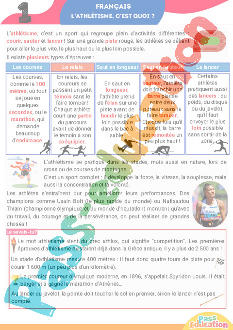 7. Quelle épreuve d’athlétisme aimerais-tu essayer ? Pourquoi ?