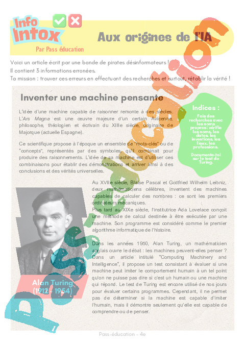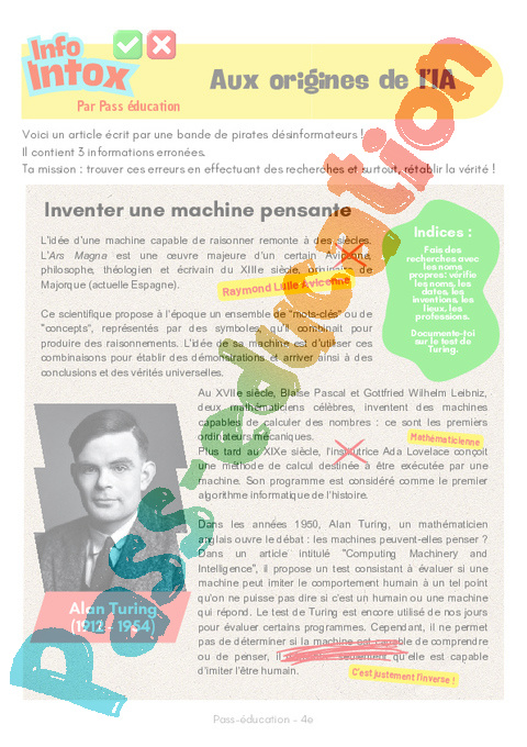 Lecture Info/Intox sur Aux origines de l’IA (intelligence artificielle) en : 2eme Secondaire .