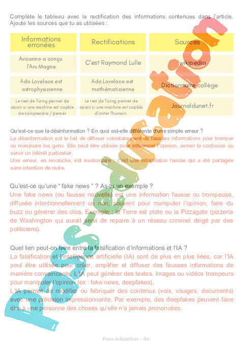 Correction Aux origines de l’IA (intelligence artificielle) : 2eme Secondaire – Littérature pdf