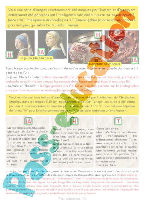 Inscris “IA” (Intelligence Artificielle) ou “H” (Humain) dans la case correspondante pour indiquer ton choix.