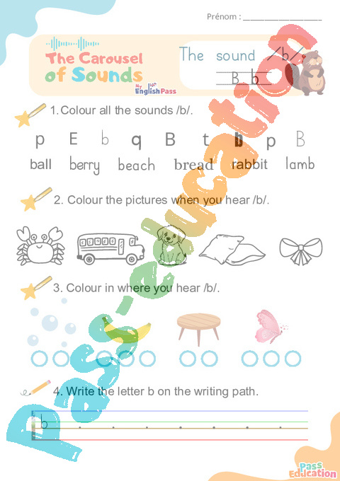Carousel of Sounds : 3eme Maternelle 1ere, 2eme, 3eme, 4eme, 5eme Primaire – Vidéo interactive + Fiche sur: /b/ b.