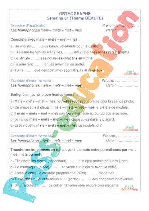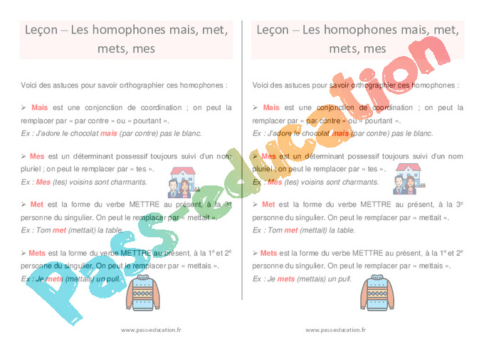 | Leçon à apprendre : Les homophones mais, mets, met et mes |
