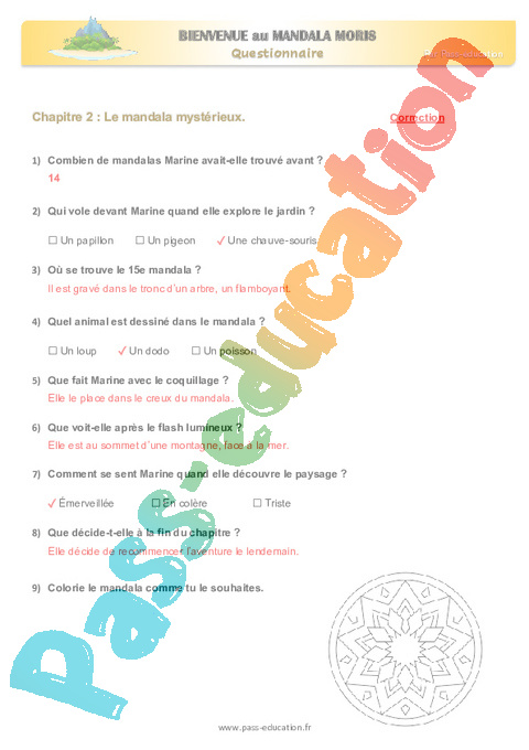 Correction Questionnaire Chapitre 2 Bienvenue au Mandala Moris : 2eme, 3eme Primaire pdf