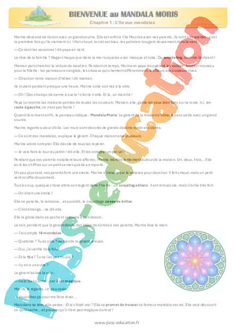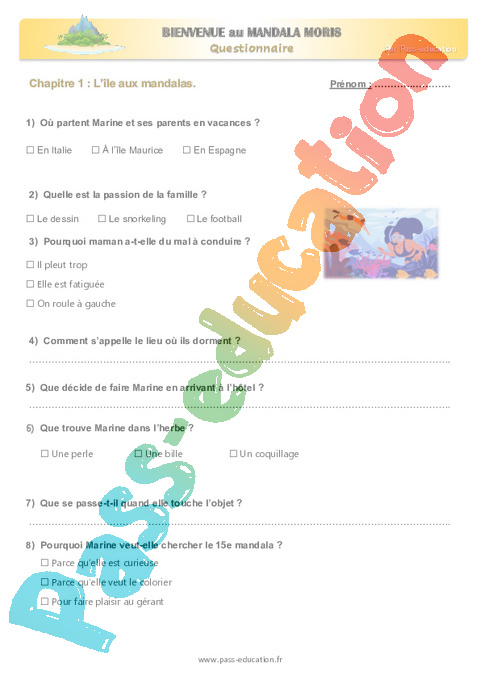 Questionnaire Chapitre 1 Bienvenue au Mandala Moris : 2eme, 3eme Primaire pdf
