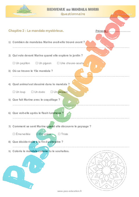 Questionnaire Chapitre 2 Bienvenue au Mandala Moris : 2eme, 3eme Primaire pdf