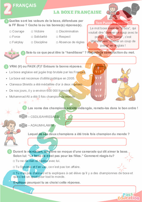 Cahier de vacances sur la Boxe à imprimer.