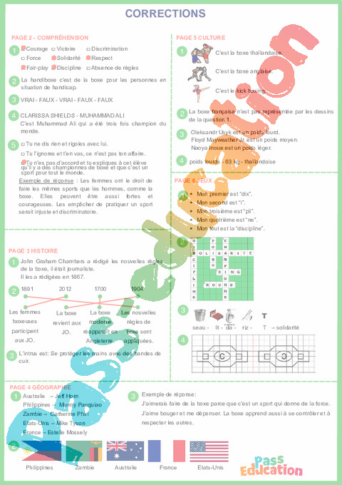 Correction Boxe – Cahier de vacances : 4eme, 5eme, 6eme Primaire pdf