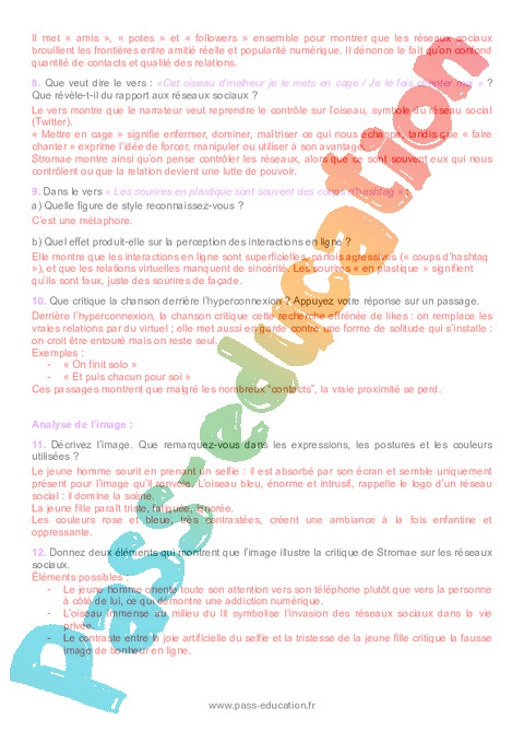 8. Que veut dire le vers : «Cet oiseau d’malheur je le mets en cage / Je le fais chanter moi » ? Que révèle-t-il du rapport aux réseaux sociaux?