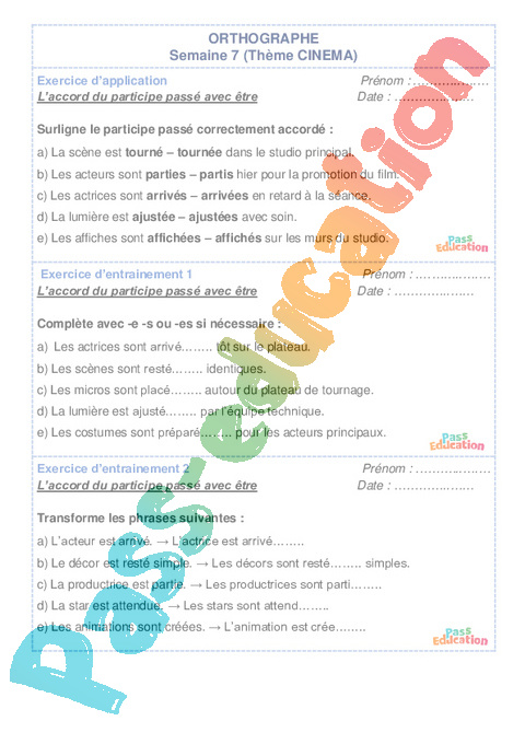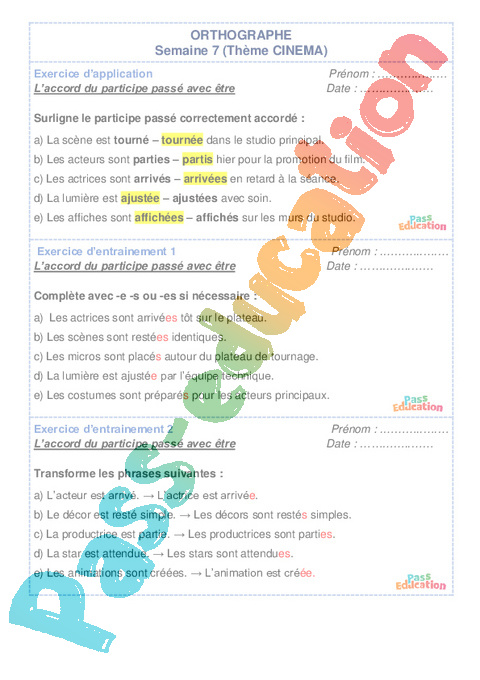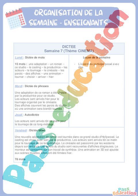 Correction 7. Semaine 7 Cinéma : 5eme Primaire – Dictée progressive hebdomadaire (n°7) pdf