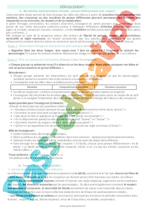 1 Fiche de préparation : 4eme Primaire Comprendre la laïcité à l’école EMC pdf