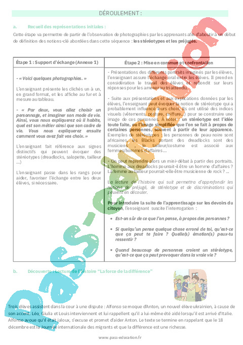 1. Fiche de préparation Comprendre les stéréotypes et déconstruire les préjugés : 5eme Primaire pdf
