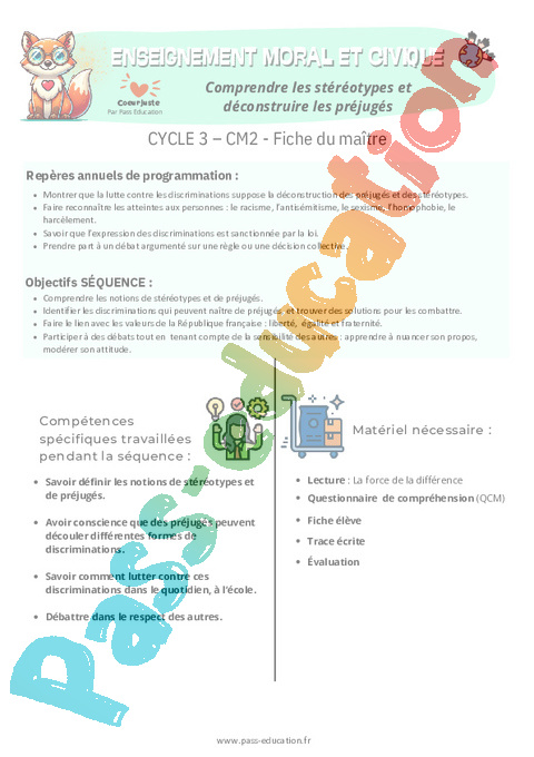 Fiche de préparation – EMC : Comprendre les stéréotypes et déconstruire les préjugés en 5eme Primaire