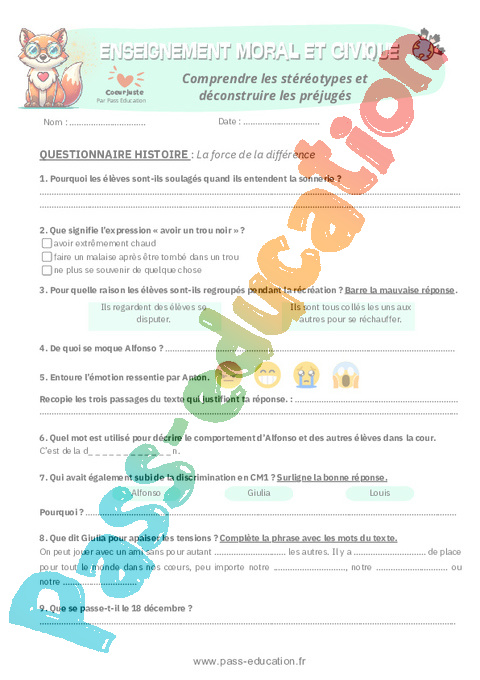 3. Questionnaire histoire Comprendre les stéréotypes et déconstruire les préjugés : 5eme Primaire pdf