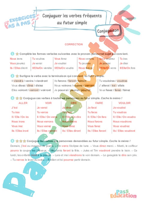 Correction Conjuguer les verbes fréquents au futur simpla 3eme Primaire – Exercices Pas à Pas rtf