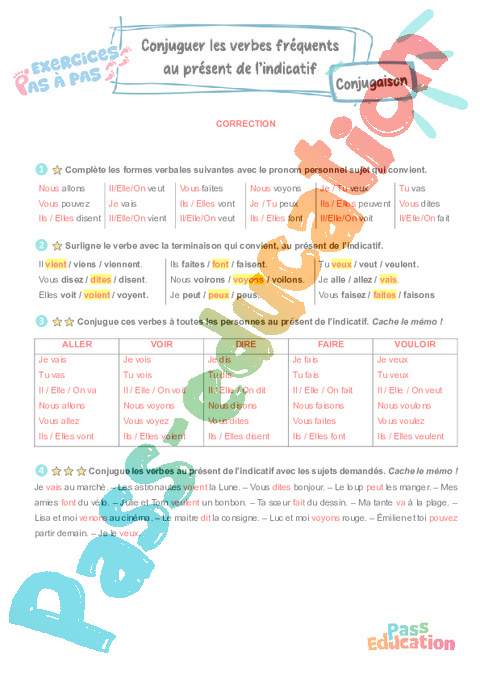 Conjuguer les verbes fréquents au présent de l’indicatif pdf