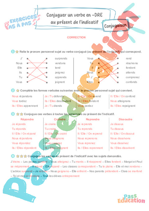 Conjuguer les verbes en -dre au présent de l’indicatif : 3eme Primaire – Exercices Pas à Pas rtf