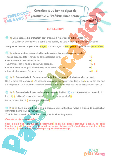 ❶ ⭐ Quels signes de ponctuation sont présents à l’intérieur de cette phrase ?