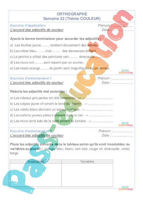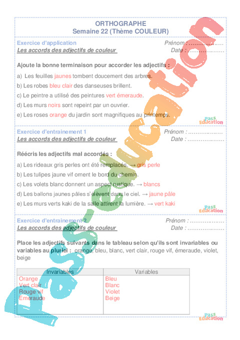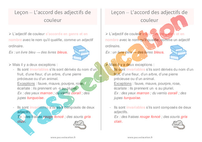| Leçon à apprendre : L’accord des adjectifs de couleur |
