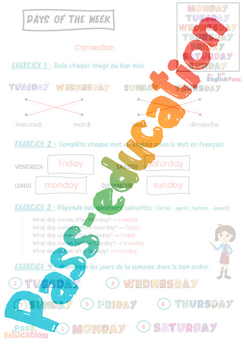 Exercice 3 : Réponds aux questions suivantes : (after→ après ; before → avant)