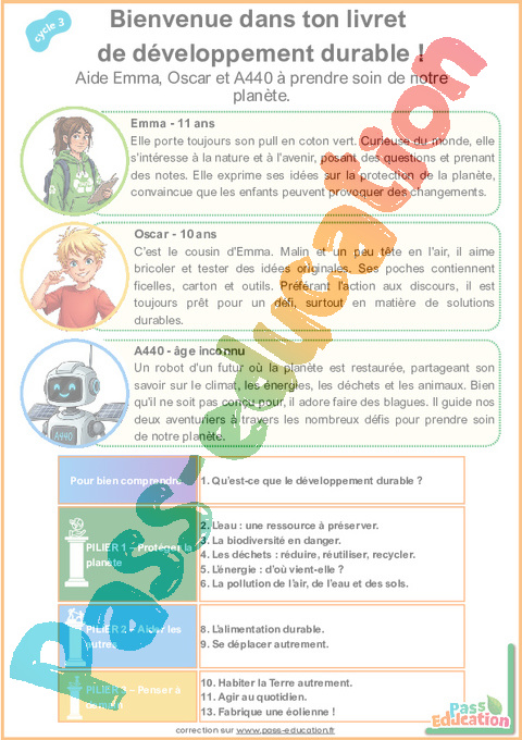 Sensibilisez vos élèves de : 5eme, 6eme Primaire et de 6ᵉ aux grands enjeux du développement durable grâce à ce fichier d’activités pédagogiques et ludiques. Biodiversité en danger, gestion des déchets, économie de l’eau : chaque notion est abordée à travers des jeux, des défis et des fiches thématiques adaptées à leur âge. Ce support est idéal pour travailler l’éducation à l’environnement en classe ou à la maison. Parfait pour éveiller l’esprit critique et encourager des gestes écoresponsables.