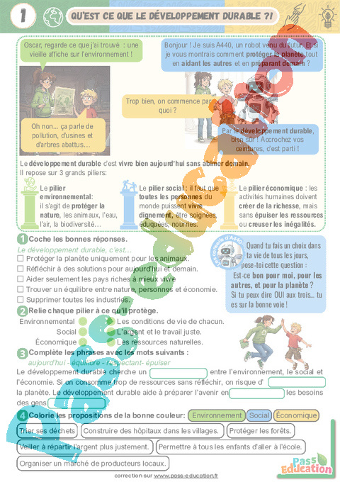 Développement durable  – Fichier d’activités : 5eme, 6eme Primaire – PDF à imprimer