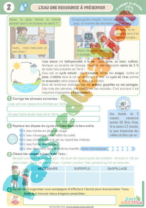 Dans de nombreux endroits, l’eau est polluée, gaspillée ou mal partagée. Cela crée des pénuries, des conflits ou des maladies. C’est pourquoi il est important d’apprendre à l’économiser.