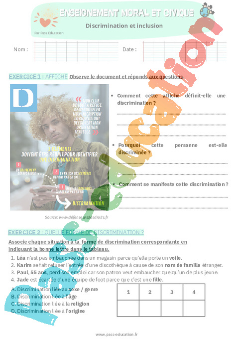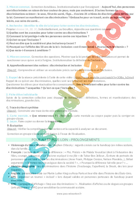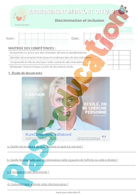 1. Fiche de préparation Discrimination et inclusion : 1ere Secondaire pdf