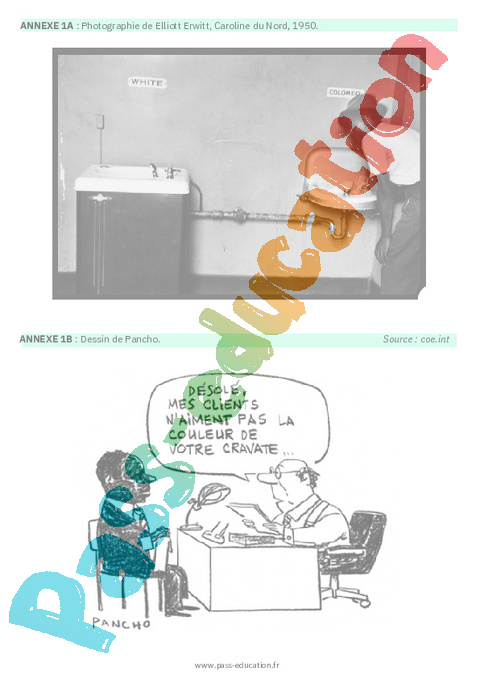 discrimination raciale » c’est-à-dire liée à la couleur de peau). Montrer aux élèves qu’il existe encore des discriminations aujourd’hui.