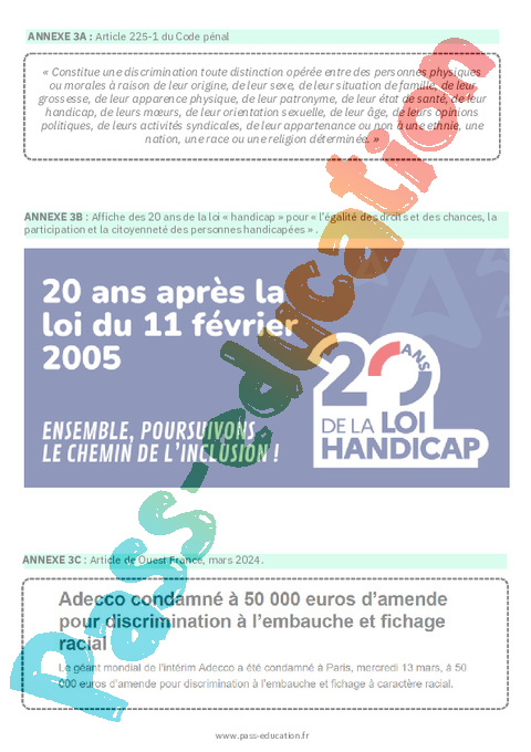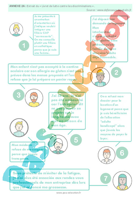 Apporter aux élèves le terme « discrimination » (dans le cas des deux documents 1A et 1B, on parle de «