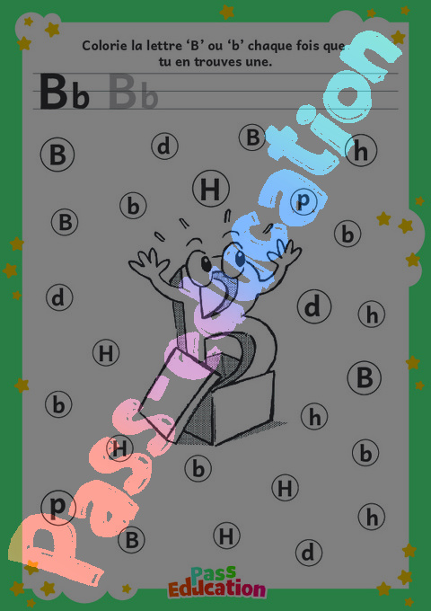 Colorie la lettre ‘B’ ou ‘b’ chaque fois que tu en trouves une.
