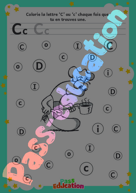 Colorie la lettre ‘C’ ou ‘c’ chaque fois que tu en trouves une.