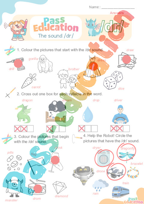 2. Colour the images when you hear /dr/.