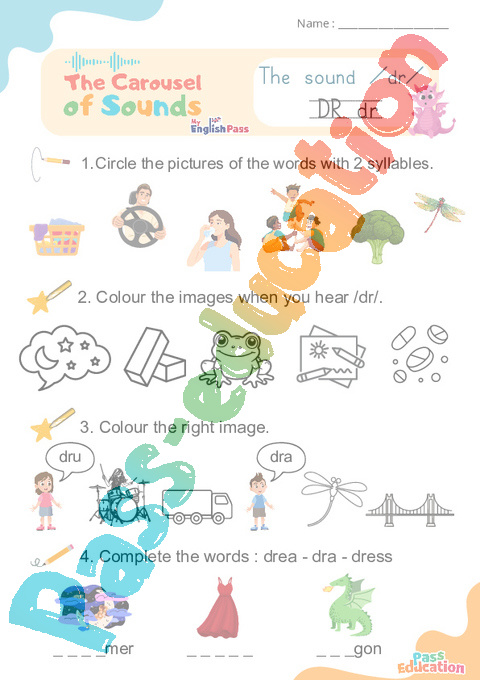 Carousel of Sounds : 3eme Maternelle 1ere, 2eme, 3eme, 4eme, 5eme Primaire – Vidéo interactive + Fiche sur le son : /dr/ dr.