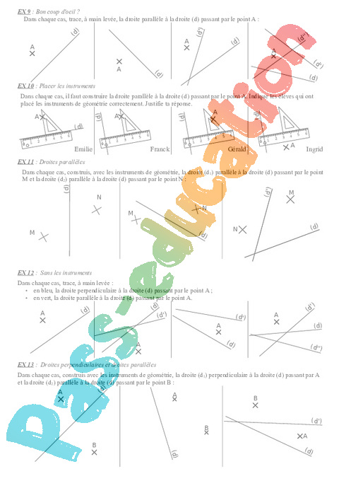 Droites, demi-droites, segments, parallèles ….. : 6eme Primaire – Géométrie – Exercices – Soutien scolaire – Fiches de révisions : 6eme Primaire