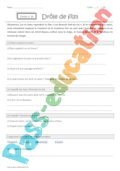 Correction Drôle de film : 4eme Primaire – Dictée accompagnée n°16 pdf