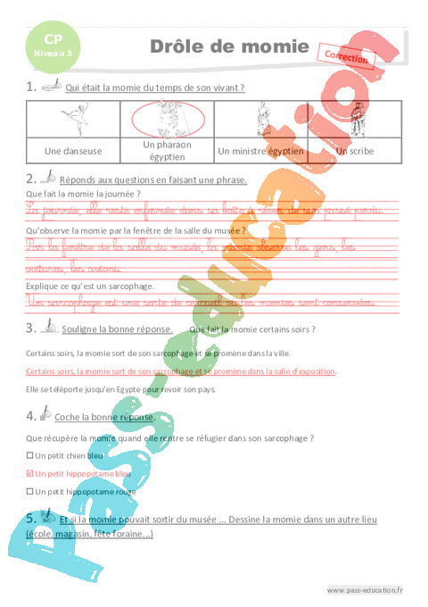 Correction Questionnaire Drôle de momie : 1ere Primaire – Luminéo – Niveau 3 pdf