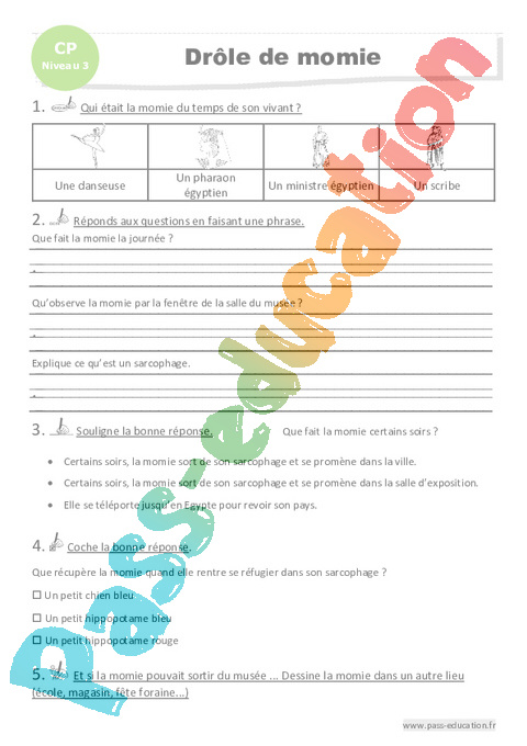 Questionnaire Drôle de momie : 1ere Primaire – Luminéo – Niveau 3 pdf
