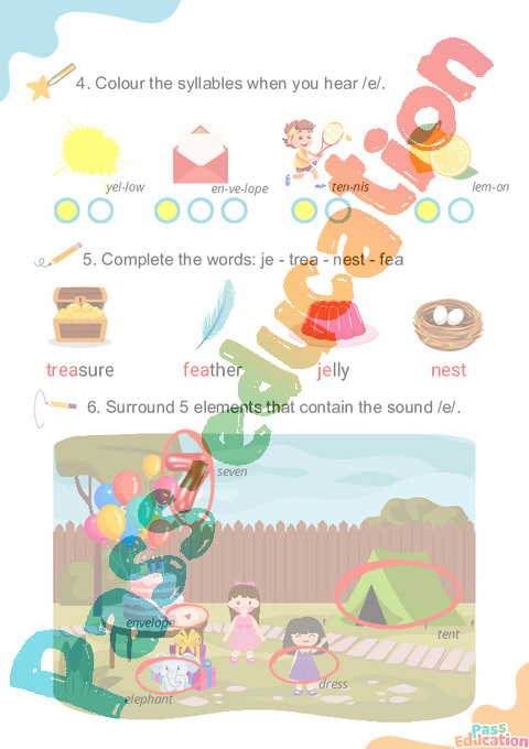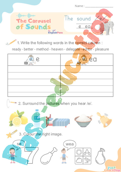 Carousel of Sounds : 3eme Maternelle 1ere, 2eme, 3eme, 4eme, 5eme Primaire – Vidéo interactive + Fiche sur le son : /e/ e ea.