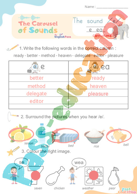 Correction e e ea – Phonologie anglaise – Carousel of Sounds pdf