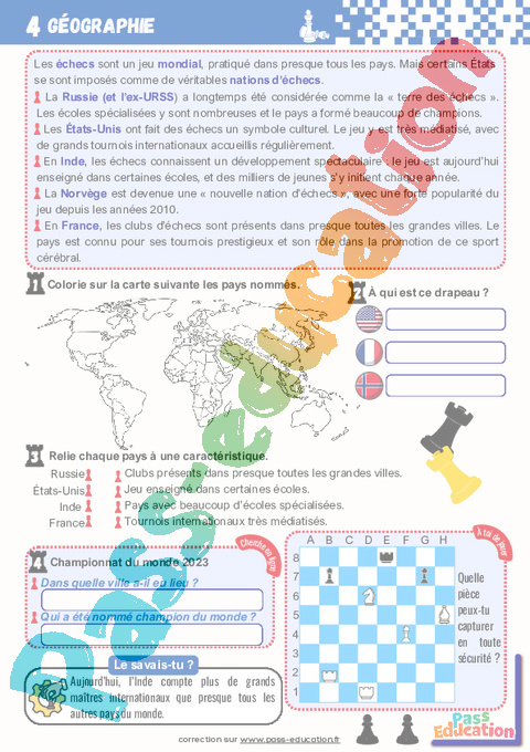 Fichier d’activités sur les échecs pour la 4eme, 5eme Primaire et la 4eme, 5eme Primaire .