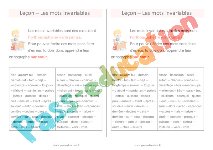 9-leçon – Les mots invariables Energie : 5eme Primaire – Dictée progressive hebdomadaire (n°9) rtf