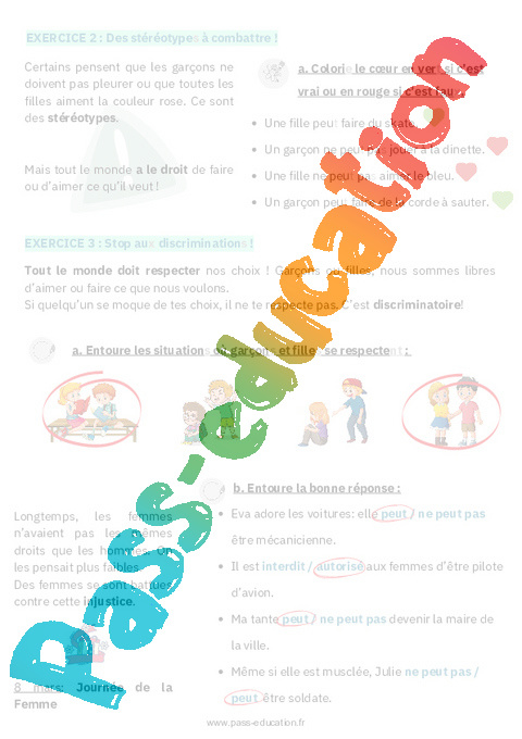4 Fiche élève : 1ere, 4eme Primaire Faire vivre l’égalité entre les garçons et les filles pdf