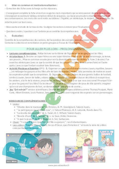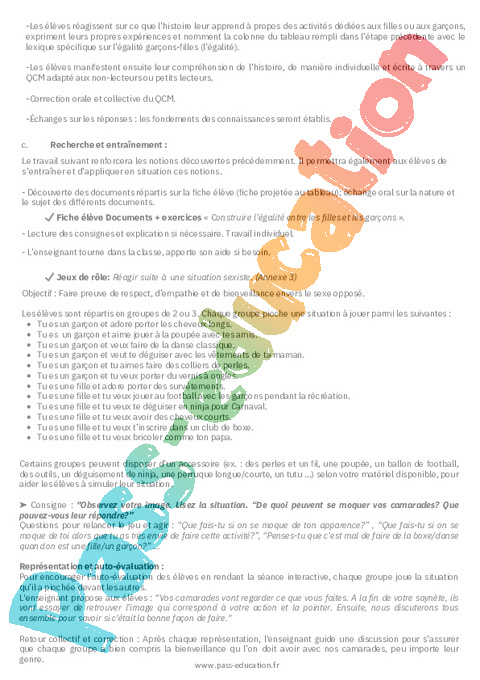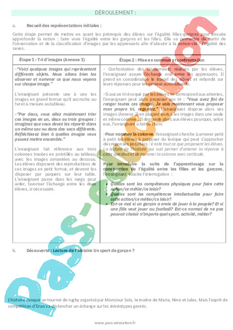 1 Fiche de préparation : 1ere Primaire Faire vivre l’égalité entre les garçons et les filles pdf