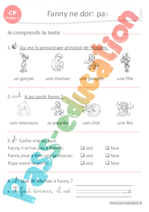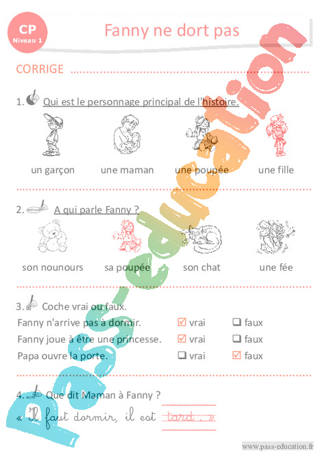 Questionnaire Fanny ne dort pas : 1ere Primaire – Luminéo – Niveau 1 + Correction pdf
