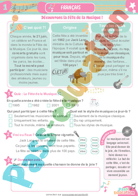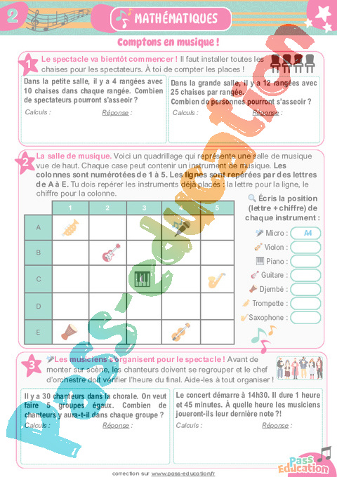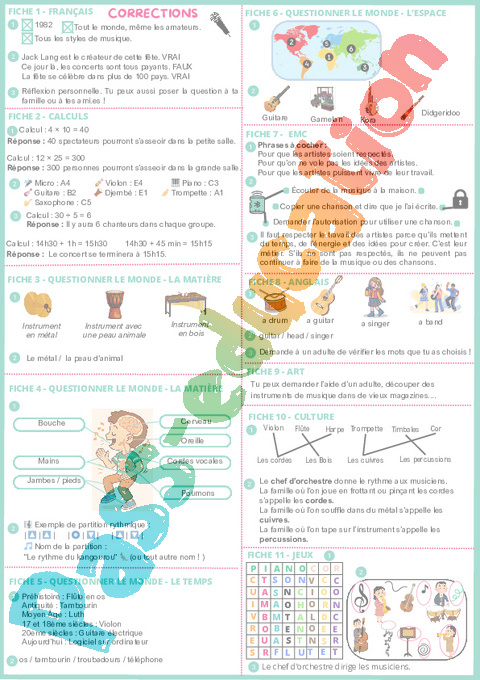 Correction La fête de la musique – Cahier de vacances : 2eme, 3eme Primaire pdf